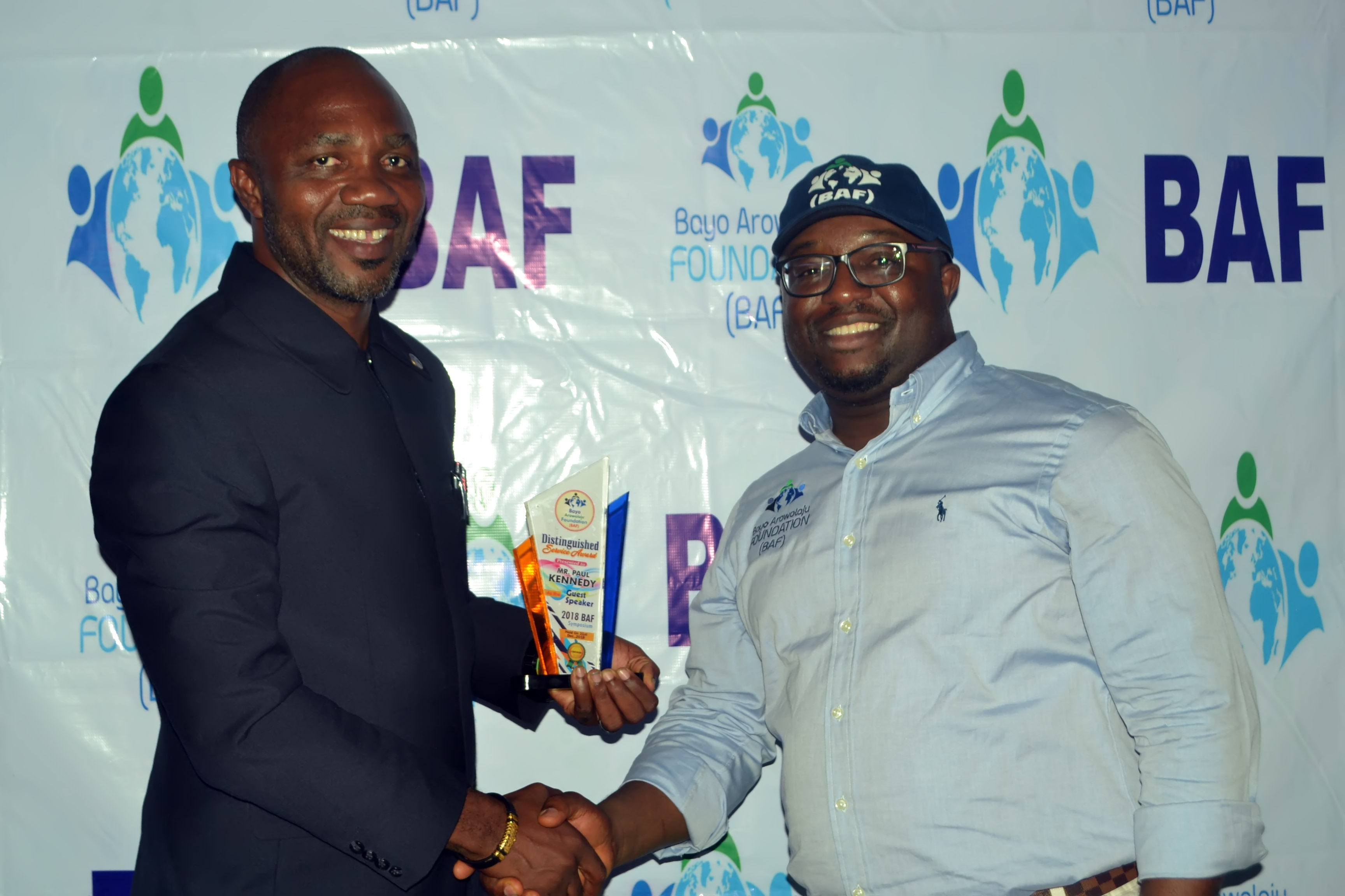 The Keynote Speaker of BAF 2018 Symposium, Mr. Paul Kennedy, the Director of Environmental and Social Performance at The Millennium Challenge Account Liberia (MCAL), a Liberian Government Agency established in 2015 by the Acts of a Liberian Legislation, to serve as the Accountable Entity in implementing a $257 Million Dollars Compact Project of the US Government and Liberian Government. In his address to a very active audience, Mr. Kennedy challenged the local, state and federal government to create an environment where private section strives so that the teeming youth can be gainfully employed. In his remarks, Mr. Kennedy stated that the challenges facing youth across Africa are similar and emphasis the need for youth to harness their potential while the government should get the youth involved in Nation building. According to the Keynote Speaker, “any country that wants to be developed must build the capacity of the young people even as he opinioned that human capacity development contributes to infrastructural and technological development. He commended Dr. Arowolaju Jr. whom he described as a brother, for BAF’s effort to transform education in Ekiti State.